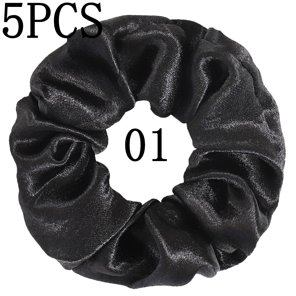 10/5 pz/lotto Accessori Donne Ragazze Raso di Seta Nastri per Capelli Solido Elastico Elegante Elastico Copricapi Titolare Scrunchy Nero