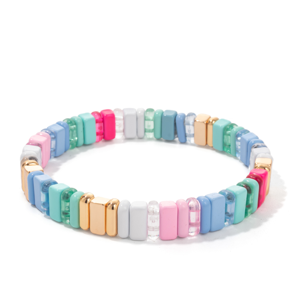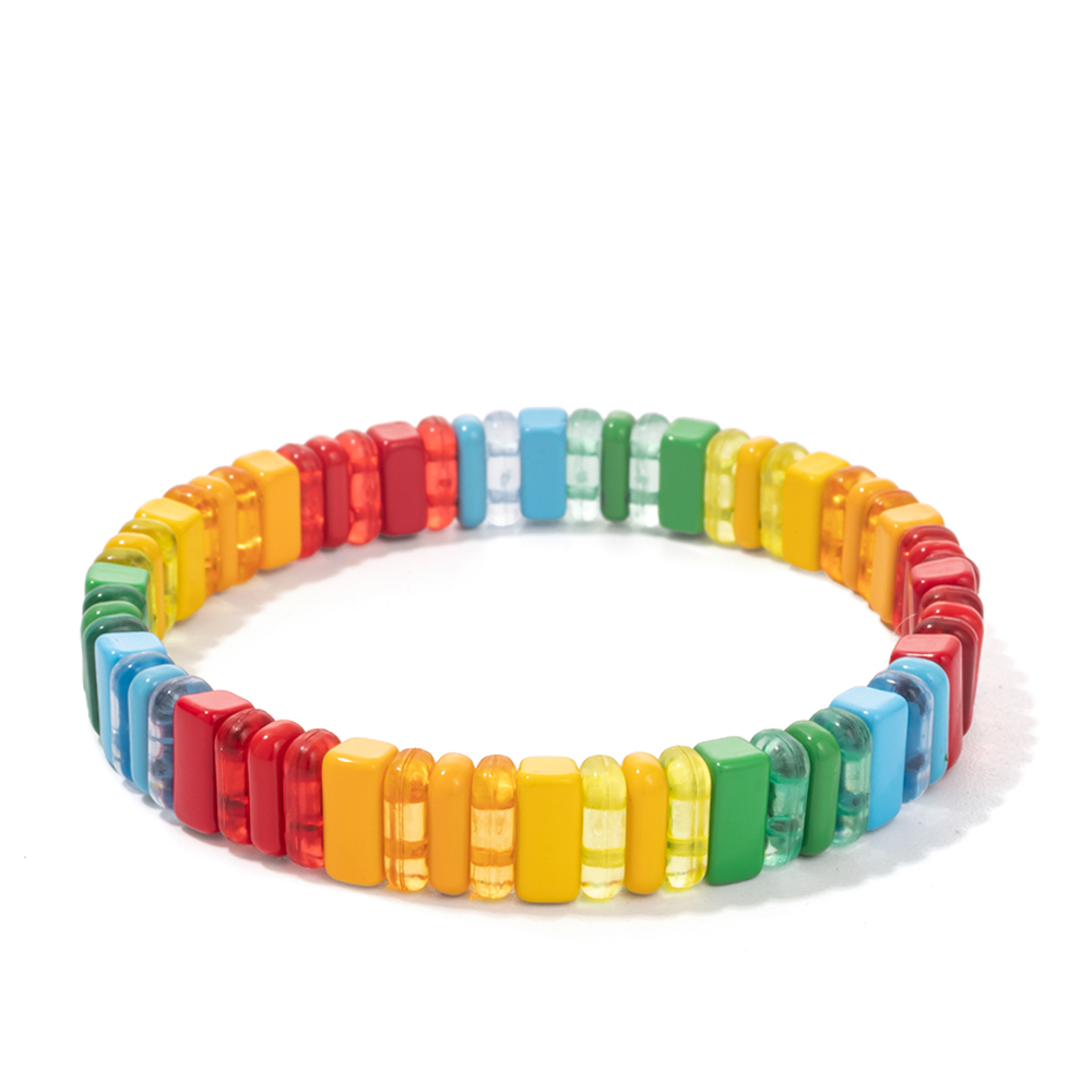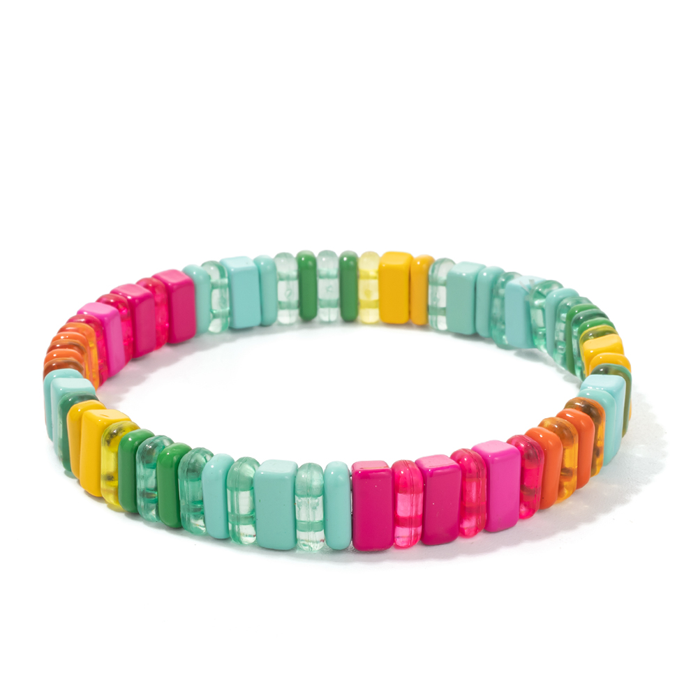 2022 Nuovo design Braccialetti Elastici Colorati per Le Donne Rianbow Acrilico Lucido Braccialetti Braccialetti di Metallo Della Boemia Perline Gioielli