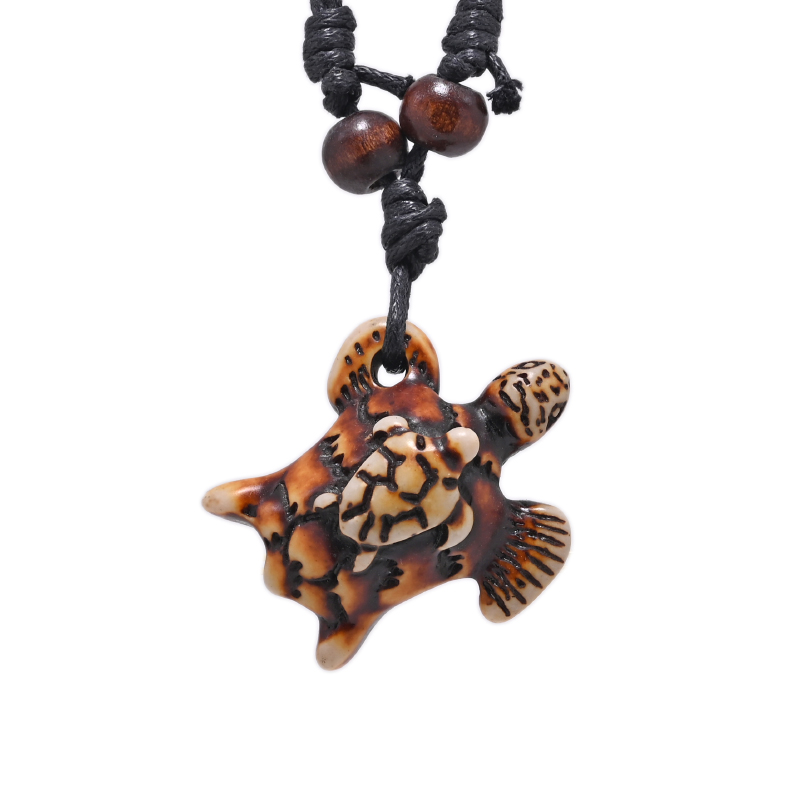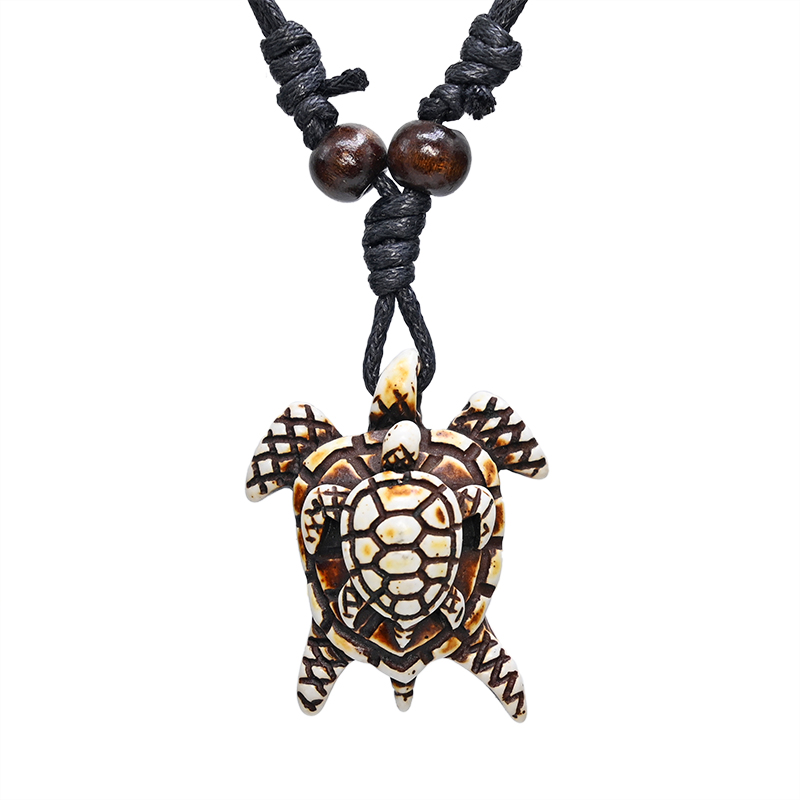 Collana da surfista Ciondolo tartaruga marina Uomo Girocollo inca Gioielli Stile nautico Imitazione yak osso Collane Amuleto Cavo di cera regolabile
