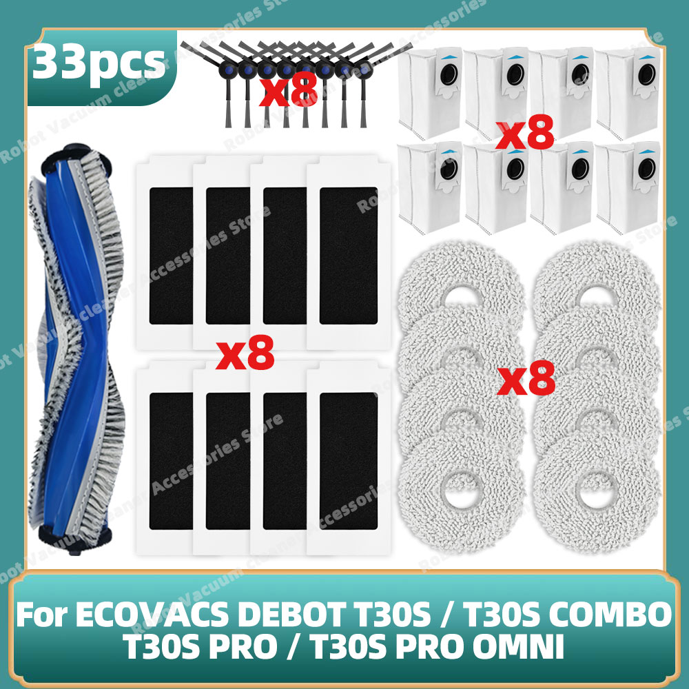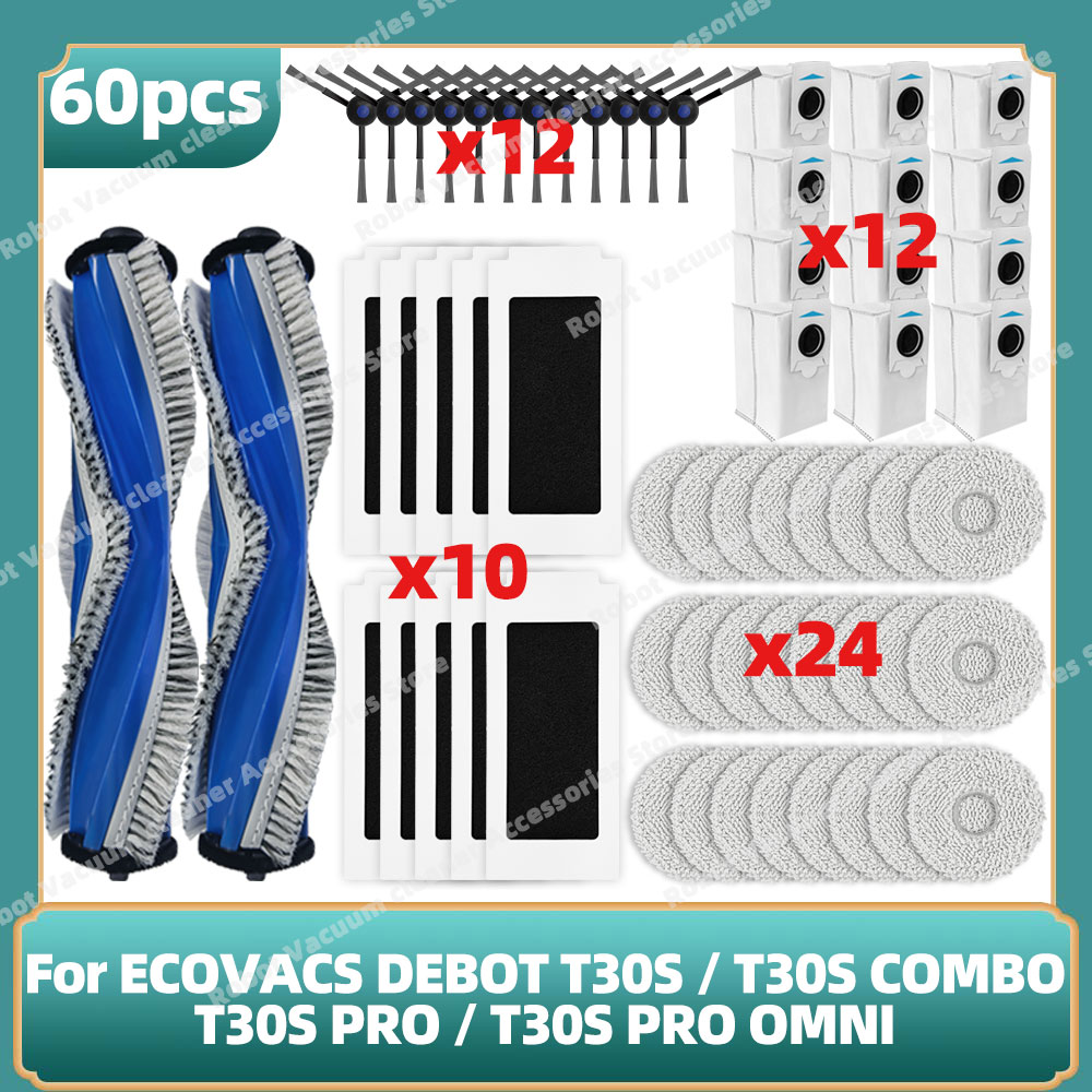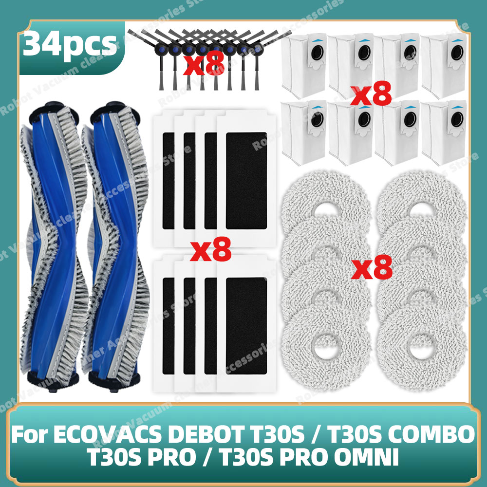 Compatibile per ECOVACS DEBOT T30S / T30S COMBO / T30S pro / T30S pro OMNI / T30S AI Parti Principale Spazzola Laterale Filtro Mocio Sacchetto per la Polvere