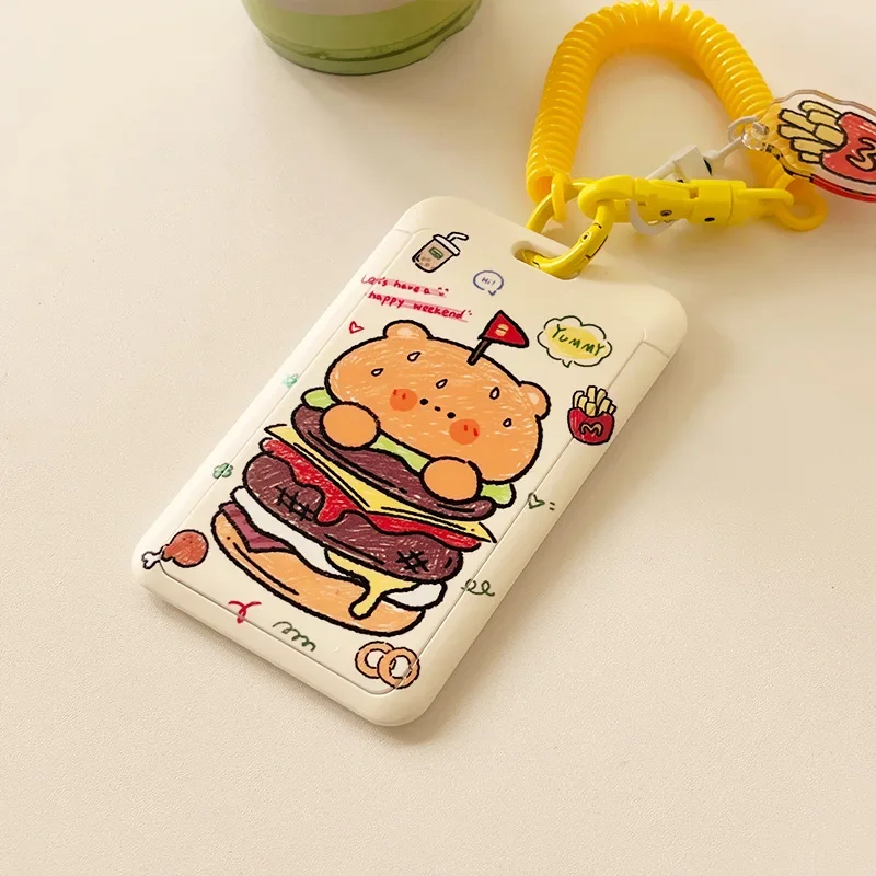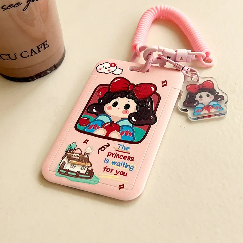 Porta carte per autobus ID studenti Porta carte tulipano orso coniglio con corda elastica Protezioni per carte di credito Custodia per carte bancarie rosa