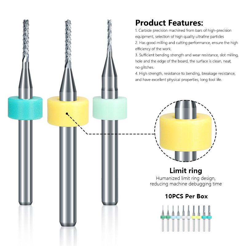 impostato di frese per PCB XCAN 0,5-3,0 mm Fresa in metallo duro 10 pezzi Punta per router per utensili di fresatura per macchine PCB